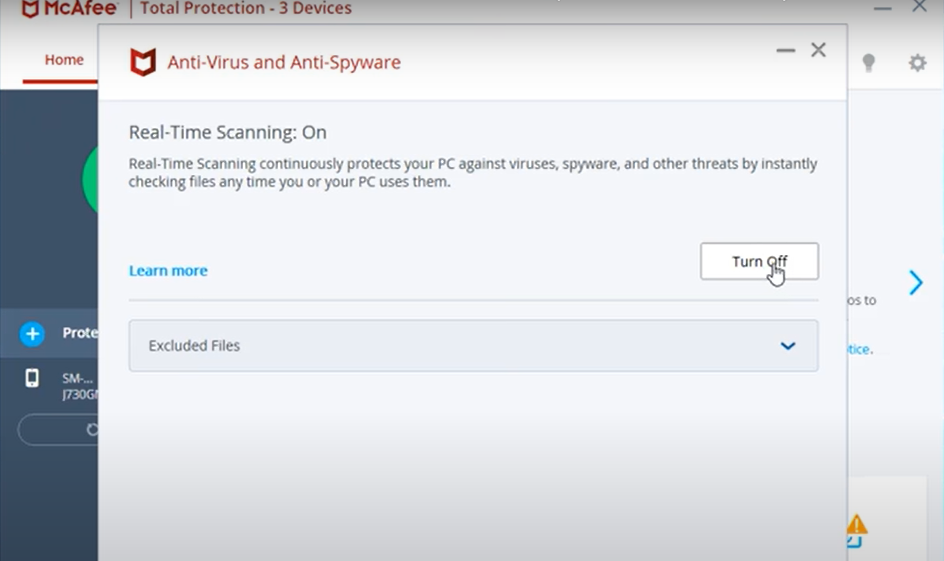 You will see toggle button to Turn On or Turn Off the “Real-Time Scanning”,